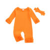 Dress your little one in style and comfort with this baby girl long sleeve jumpsuit and matching bow headband. Made from a soft blend of 95% cotton and 5% elastane, this outfit is gentle on delicate skin while allowing your baby the flexibility to move and play with ease. The solid color design with an O-neck collar makes it timeless, simple, and perfect for everyday wear or special outings. Whether it’s tummy time, nap time, or family photos, this outfit keeps your little one looking cute and feeling cozy.
