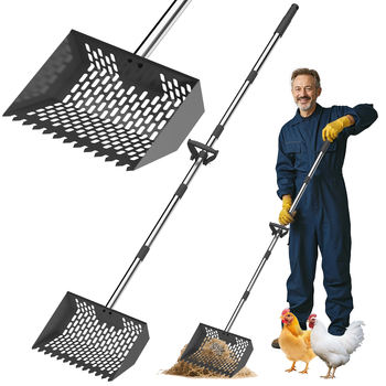 Extendable Chicken Poop Scooper with Adjustable Handle & Sifter Rake