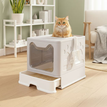 Large Hooded Cat Litter Box with Scoop and Easy-Clean Drawer