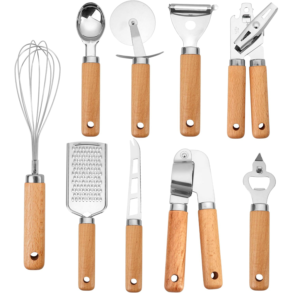 Bring style, comfort, and efficiency to your kitchen with this Stainless Steel Kitchen Gadget Set with Wooden Handles. Designed for everyday home cooking, this versatile tool set makes food preparation faster, easier, and more enjoyable. Whether you’re slicing pizza, crushing garlic, or handling hot ingredients, these durable utensils help you get the job done with confidence and ease.
