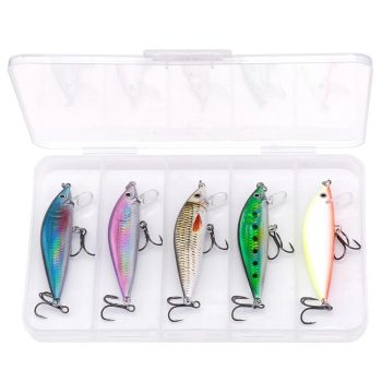 5-Piece Sinking Minnow Fishing Lure Set with Tackle Box