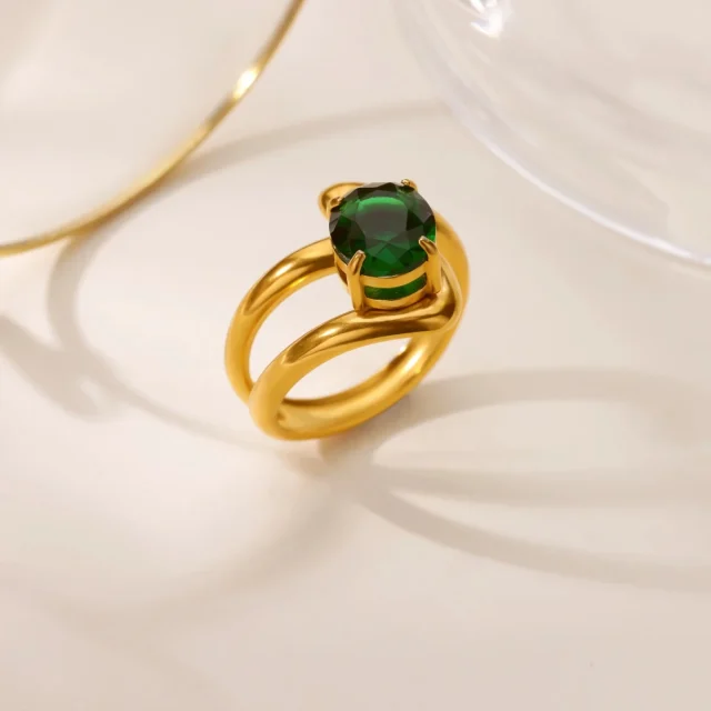 This ring combines the beauty of fine jewelry with the practicality of everyday accessories. Its bold geometric design makes it stand out, while the classic green zircon adds a touch of timeless charm. The hypoallergenic stainless steel base ensures comfort, making it perfect for long wear. Whether you’re treating yourself or gifting someone special, this ring is a meaningful way to bring sparkle into any moment.