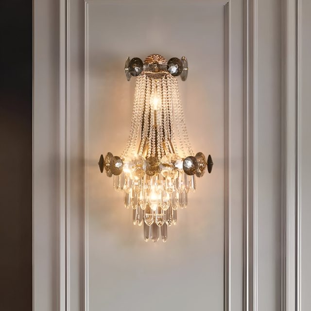 Transform your living space into a haven of elegance with the Luxury Crystal Wall Lamp. Designed for discerning homeowners, this exquisite wall light combines the brilliance of crystal with the strength of fine iron craftsmanship. Its shimmering surface catches the light beautifully, creating a captivating ambiance that enhances your living room, bedroom, or hallway with a touch of modern sophistication.