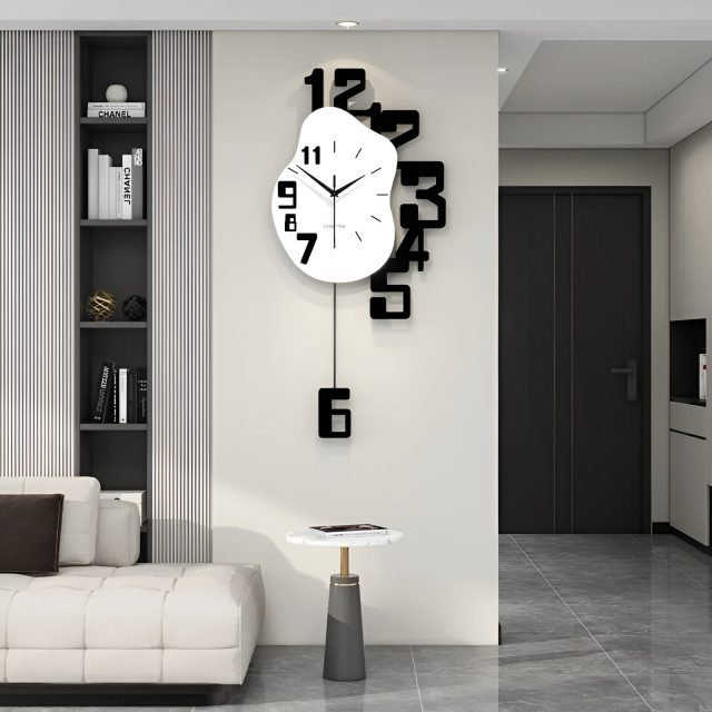 This wall clock is more than just a timekeeper – it’s a statement of style. The abstract, modern design fits seamlessly into any minimalist or contemporary interior. Whether you’re enhancing your living room, study, or office, this piece instantly elevates your décor with a clean and creative touch. The pendulum movement adds life and character, transforming an ordinary wall into a display of elegance.