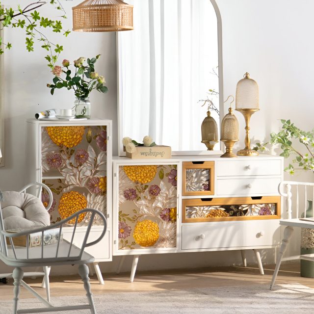 This cabinet provides generous space without overwhelming your room. Designed for convenience, it features three storage buckets and two wide doors that open smoothly for easy access. The dust-proof and ventilation design keeps your belongings fresh and clean, while the anti-dumping structure ensures safety and stability for daily use. Whether used as a display unit, a sideboard, or an organizer, this cabinet elevates the functionality of your living area.