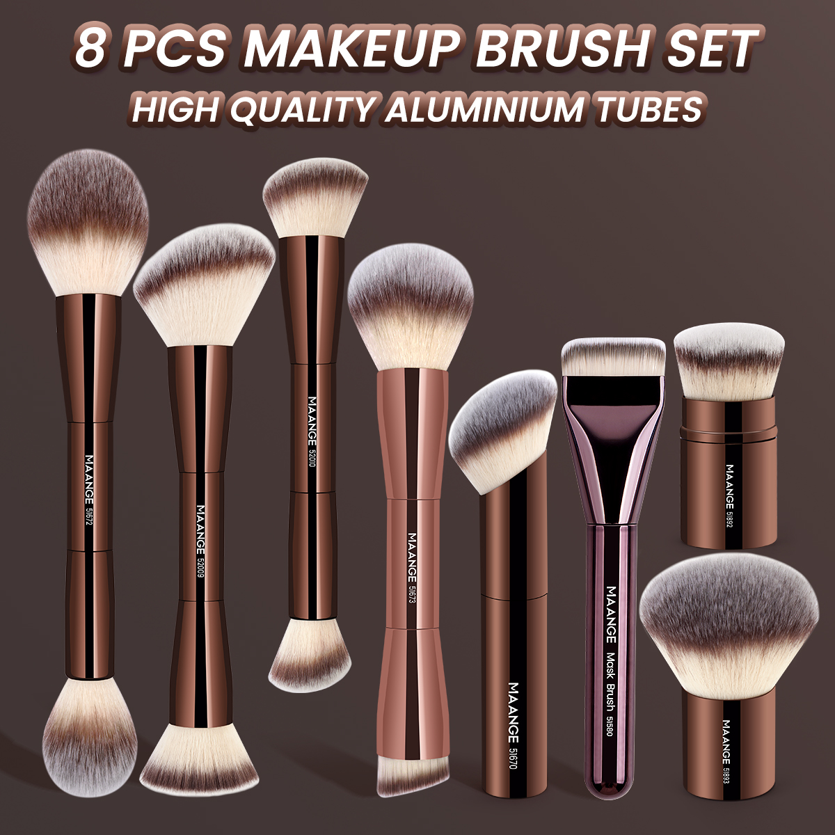 Achieve a smooth, airbrushed finish every time with this luxurious 8-piece double-ended foundation makeup brush set. Designed for both beginners and beauty enthusiasts, these ultra-thin top brushes effortlessly blend liquid, cream, and powder products for a flawless complexion. With high-quality synthetic hair bristles and ergonomic ABS handles, they deliver precision and comfort with every stroke.