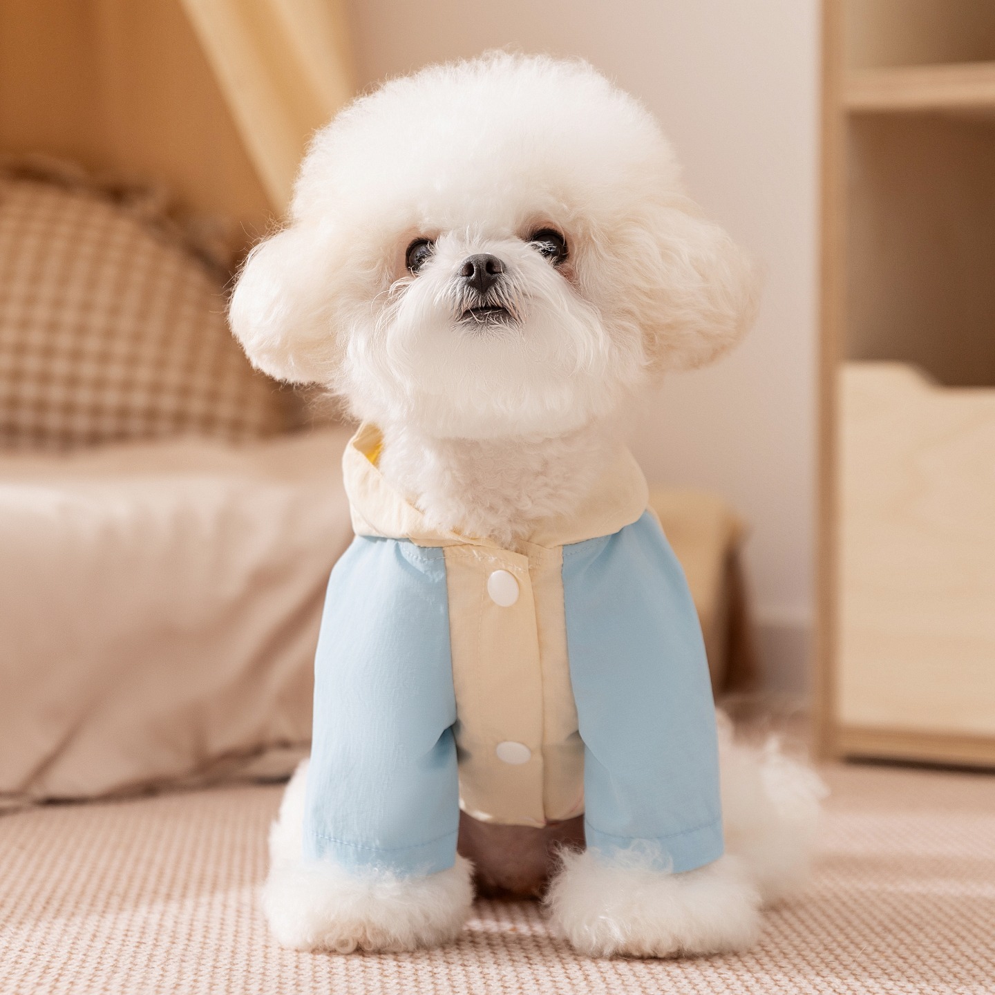 This hoodie stands out thanks to its playful macaron color palette and thoughtful fit. Unlike bulky pet coats, it offers warmth without stiffness, making it ideal for daily wear. The waterproof outer layer helps keep your dog comfortable during drizzles or wet grass, while the two-legged cut provides a snug, secure feel.