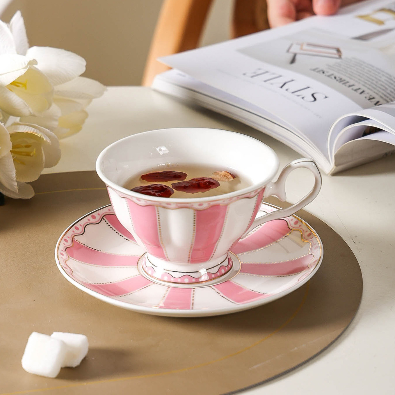 Unlike plain coffee cups, this set stands out with its artistic blend of stripes and polka dots accented by a shimmering golden edge. It is more than just a cup—it’s a statement piece that enhances the atmosphere of your home while bringing joy to every sip. Its timeless European-inspired design makes it an eye-catching addition to your kitchen or dining room collection.
