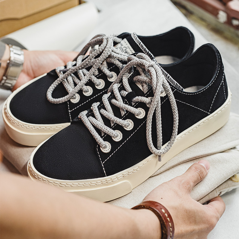 Take your casual game to the next level with these black thick-soled canvas sneakers designed for men who want both style and confidence. Crafted with a blend of durable canvas and soft nubuck leather, these low-top shoes are the perfect fusion of comfort and modern streetwear flair. Whether you’re heading out for a laid-back day, weekend hangout, or casual work setting, these sneakers give you a natural height lift while keeping your steps light and easy.
