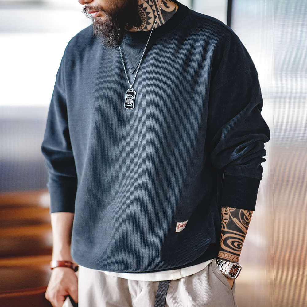 This sweater is designed with a thick, three-dimensional pit-stripe structure, giving it a premium feel that resists pilling and wrinkles. Made with high-quality polyester and spandex blend, it provides a soft, flexible touch without losing shape. At approximately 14 ounces per square yard, the fabric ensures warmth without being heavy, making it ideal for transitional weather.