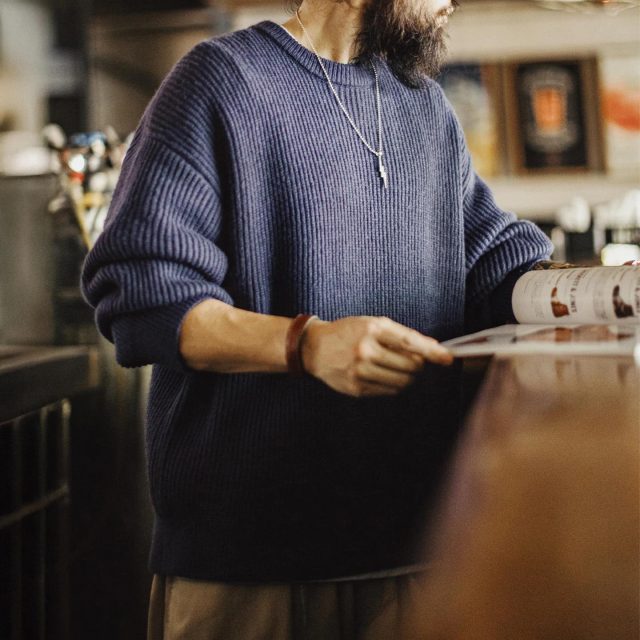 This sweater stands out thanks to its textured knit construction and subtle vintage stripe design. The ribbed crewneck and cuffs add structure while the drop-shoulder fit creates a laid-back, slightly draped silhouette. It balances warmth with breathability, so you stay comfortable indoors and outdoors. The cable knit detailing brings depth and a premium look without being too bold or heavy.