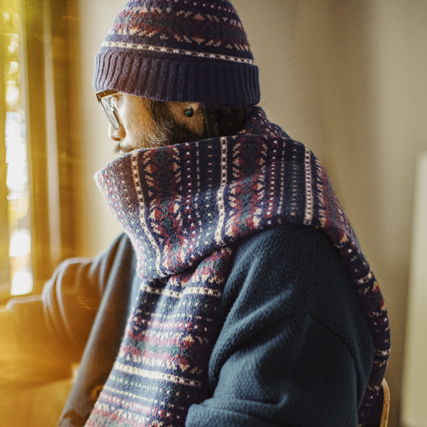Fair Isle Knit Scarf & Beanie Set – Windproof Winter Gift for Men