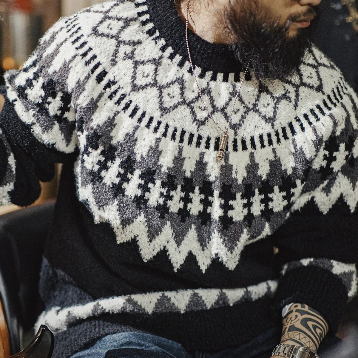 What sets this pullover apart is its vintage Icelandic design combined with a modern heavy knit structure. The detailed jacquard pattern adds character, while the thickened fabric traps warmth without feeling bulky. It gives you that classic winter sweater look often seen in holiday photos, travel scenes, and cozy cabin vibes.