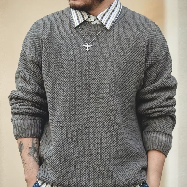 What sets this sweater apart is its unique textured pattern and heavyweight feel. Unlike thin knits that lose shape, this one holds its structure and creates a solid, premium look. The fabric blend balances warmth and comfort, so you stay cozy without feeling stiff. It gives you that vintage workwear vibe while still fitting naturally into modern outfits. It’s designed for people who appreciate detail, texture, and quality without loud logos or over-styling. Just a clean, confident piece you can rely on season after season.
