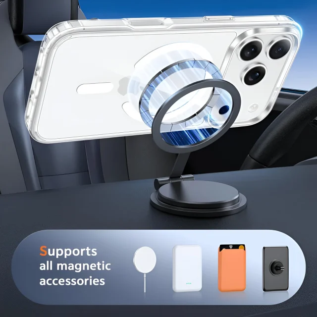 Equipped with a strong built-in magnetic ring, this case perfectly aligns with MagSafe chargers and accessories for quick, wireless charging. No need to remove the cover — simply snap it onto your charger and enjoy instant power. Whether you’re at your desk, in the car, or relaxing at home, charging has never been this easy.