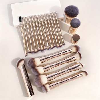 20-Piece Professional Makeup Brush Set with Metal Handles and Velvet Pouch