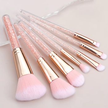 7pcs Pink Crystal Handle Makeup Brush Set – Professional Soft Synthetic Fiber