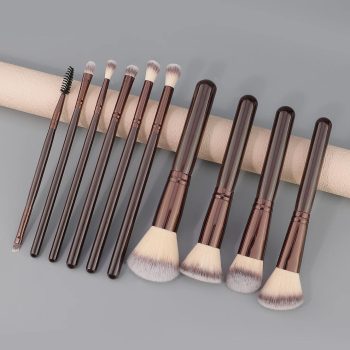 10 Pcs Professional Makeup Brush Set – Wooden Handle with Soft Synthetic Bristles