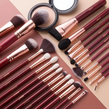 Vintage Burgundy Red Professional Makeup Brush Set