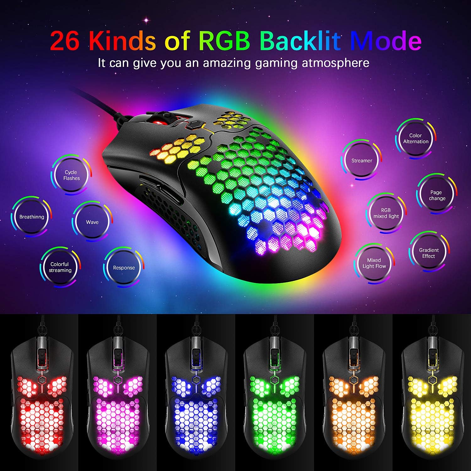 The mouse complements your setup with adjustable DPI ranging from 200 all the way up to 12,000, giving you full control over sensitivity. Measuring roughly 14 × 10 × 0.2 inches, it includes six responsive buttons and 26 customizable breathing light effects for a personalized touch.
