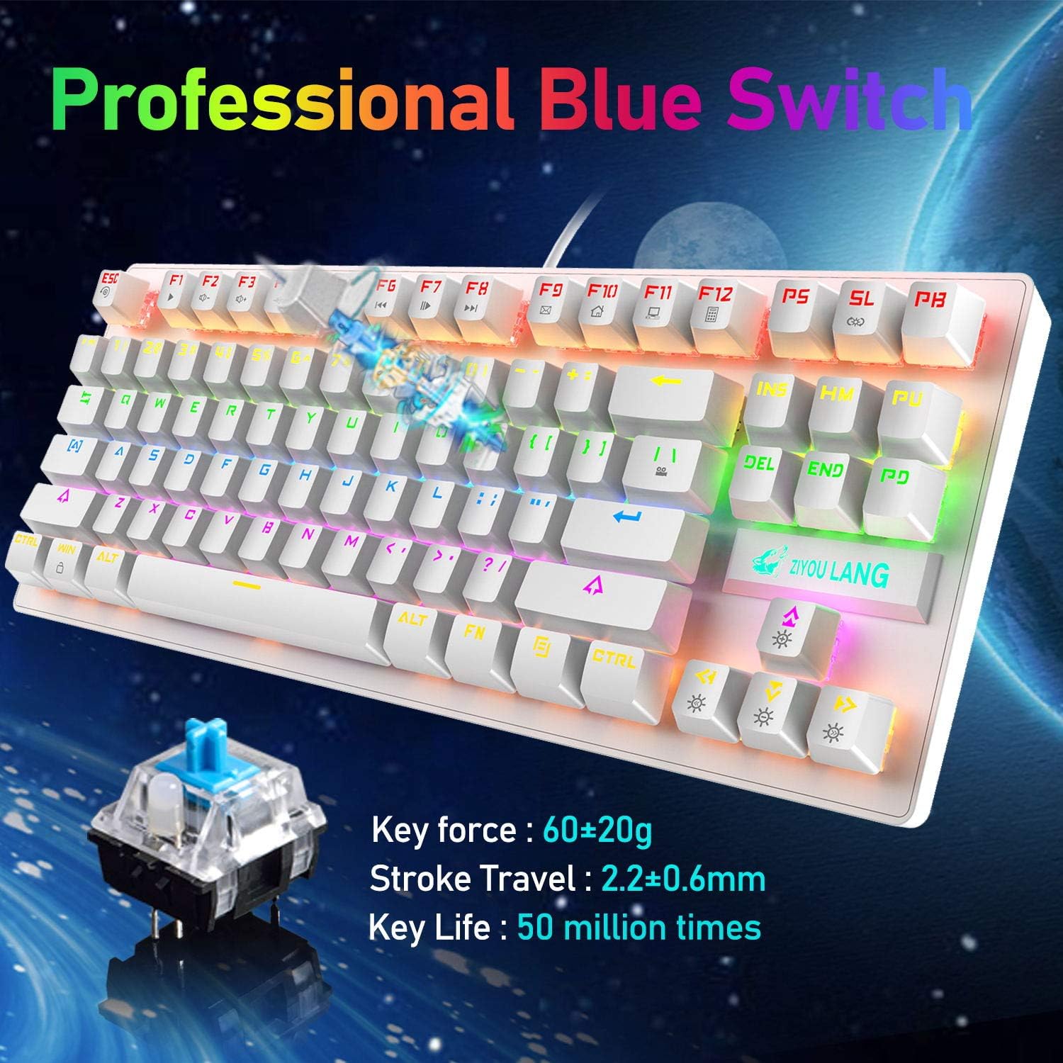 Experience fast, crisp, and responsive typing with this compact 82-key mechanical gaming keyboard designed for players who want performance without sacrificing desk space. Equipped with tactile blue switches, it delivers that satisfying click and precise actuation that gamers and typists love. Its vibrant rainbow LED backlighting adds personality to your setup while improving visibility during late-night gaming sessions.