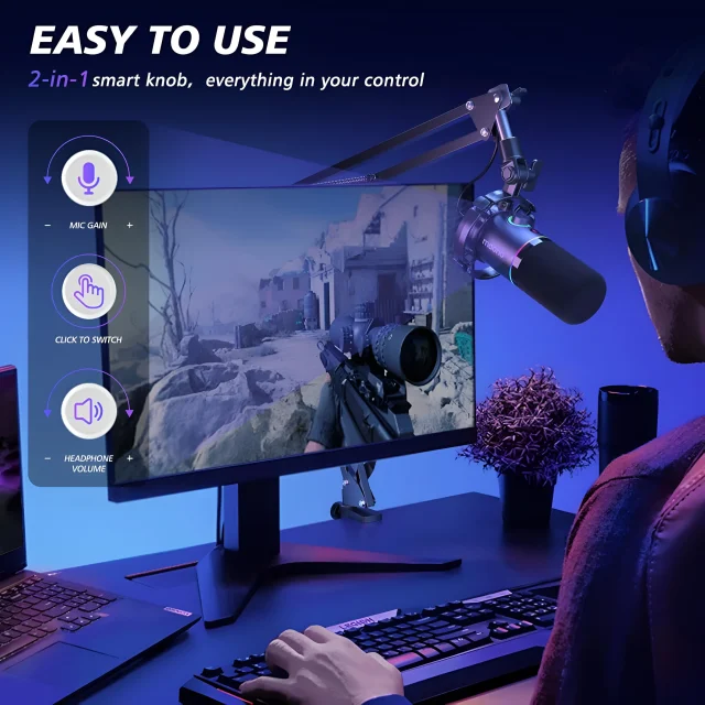 This microphone combines precision design with ultimate control. The built-in gain knob lets you fine-tune your input levels on the fly, while the responsive mute button ensures instant silence when you need it. You can easily monitor your voice using the headphone volume control, giving you complete command over every detail of your sound. Its programmable RGB lighting adds a personalized touch, making your setup look as great as it sounds.