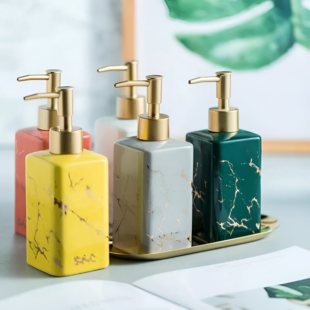 Our Marble Pattern Square Ceramic Lotion Bottle is not only a stylish addition to your bathroom but also a highly functional item that helps keep your bathroom organized. The sleek and contemporary design enhances any modern bathroom, while the ceramic material ensures durability and a smooth touch. This bottle is perfect for holding your favorite soaps, lotions, and shower gels, offering easy access and a touch of elegance every time you use it.