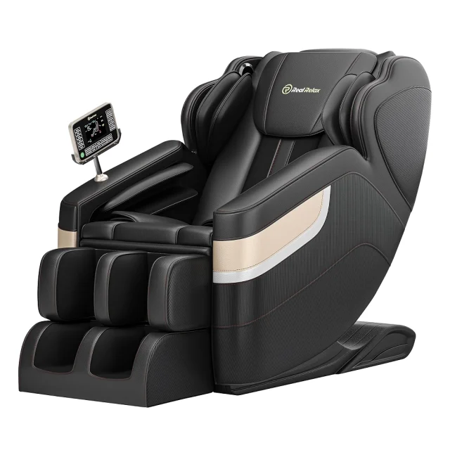 This full body massage chair uses a system of airbags that gently knead your shoulders, arms, thighs, legs, and feet, helping release deep tension and improve circulation. With 8 fixed Shiatsu rollers working along your back, it targets soreness and stiffness, melting away fatigue after long days. The lumbar heating function adds warmth to your lower back, soothing muscles and enhancing relaxation. Control every setting easily through the LCD touchscreen or enjoy your favorite tunes via the built-in Bluetooth speakers for a completely immersive experience.