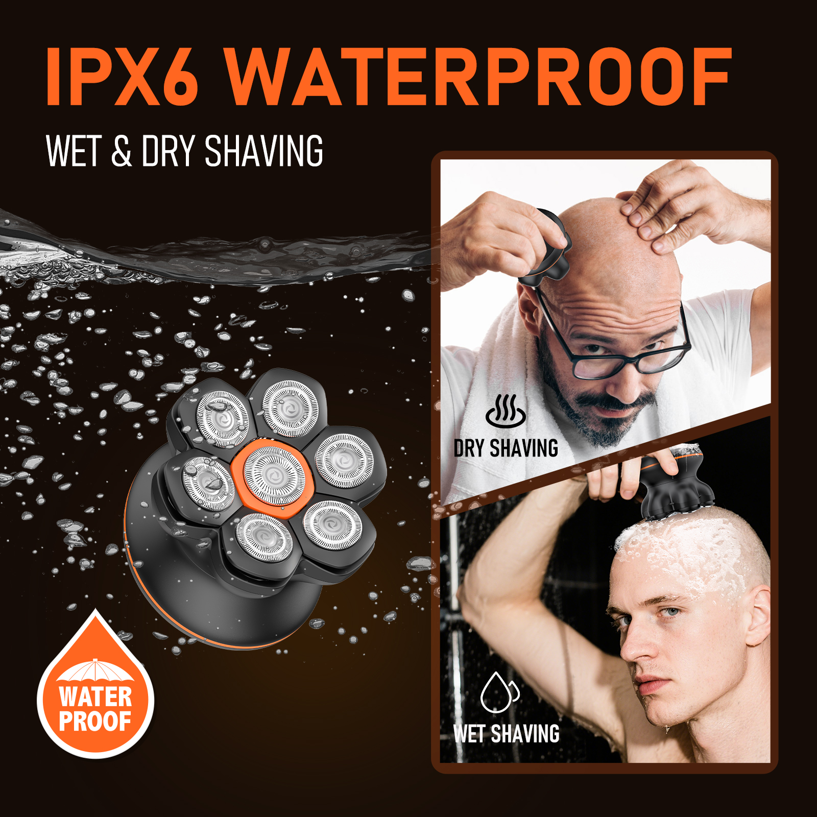 Featuring a dual-speed motor and stainless-steel precision blades, the shaver adapts effortlessly to all hair types—fine, coarse, or thick. The flexible Octo-Flex 7D floating system moves in multiple directions to match the natural shape of your head and jawline, ensuring even results with minimal effort. Its ergonomic design offers a firm, comfortable grip for total control during every shave.