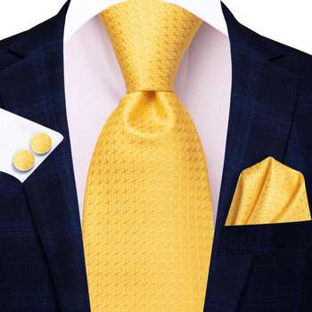 Yellow Gold Polka Dot Silk Tie Set with Handkerchief and Cufflinks