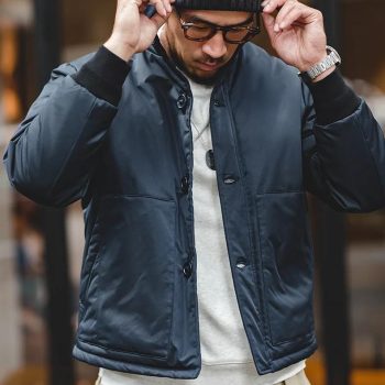 Men’s Winter A1-Style Bomber Jacket with Stand Collar and Warm Padding