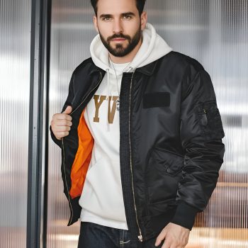 Men’s Winter Windproof Bomber Jacket with Waterproof Shell and Orange Lining