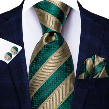 Green Striped Silk Men’s Tie Set – Elegant Jacquard Neckties for Business & Weddings