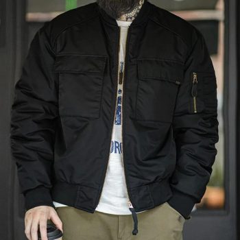 Men’s Classic MA-1 Bomber Jacket with Baseball Collar and Orange Lining