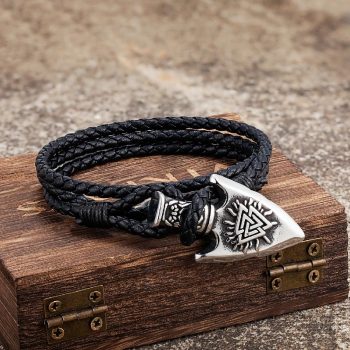 Vintage Viking Leather Wrap Bracelet with Norse Rune Amulet