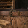 • Vintage floral carved buckle with Western character