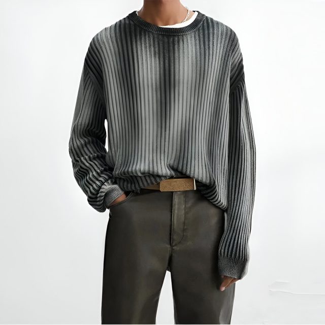 Men’s Casual Round Neck Pullover Knit Sweater – Striped Versatile Top