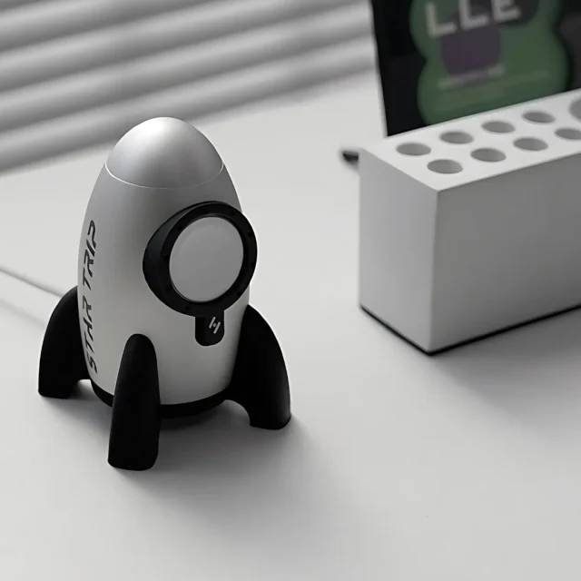 Bring futuristic design and functionality to your Apple Watch setup with the Rocket-Style Metal Charging Dock — the perfect fusion of style, durability, and innovation. Shaped like a sleek metal rocket, this compact charging stand elevates your desk, nightstand, or workspace with a touch of modern flair while keeping your watch charged and ready for takeoff.
