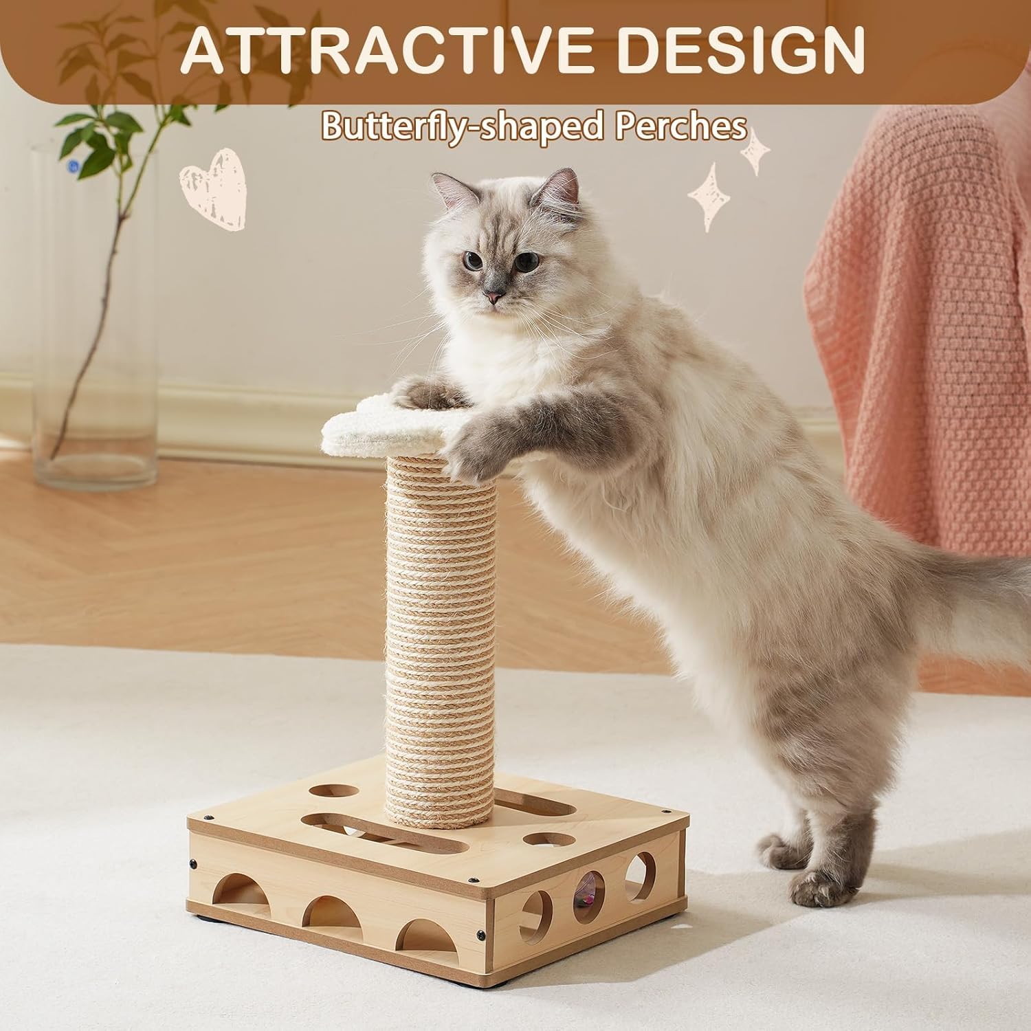Give your cat the ultimate playtime experience with the Interactive Wooden Cat Toy Puzzle Box. This 3-in-1 activity center offers hours of fun, mental stimulation, and stress relief, all while protecting your furniture from scratching. Your cat will love the interactive balls, sisal scratching post, and the butterfly jumping platform. Don’t wait—transform your cat’s playtime into an adventure today!