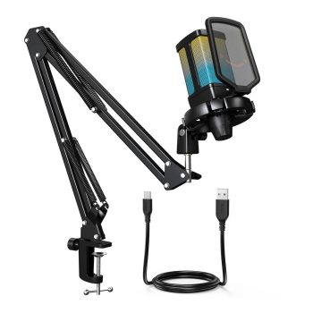 RGB USB Gaming Microphone Set with Mute & Noise Reduction for PC and PS5