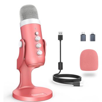 Pink USB Condenser Microphone for Streaming, Podcasting & Gaming
