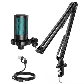 RGB USB Gaming Microphone Kit with Mute Button and Adjustable Boom Arm
