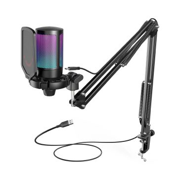 RGB USB Gaming Microphone with Boom Arm and One-Tap Mute