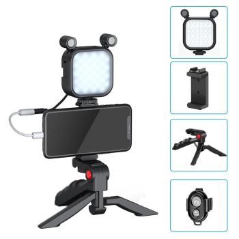 Complete Vlogging Kit with Microphone, LED Light, Tripod, and Bluetooth Remote