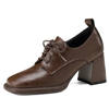 Featuring a sleek square toe and stable square heel, these pumps combine modern trends with timeless style. The high heel, ranging from 2 to 3 inches (5–8 cm), offers the perfect balance of elegance and wearability, giving you extra height without sacrificing comfort. The lace-up detail not only adds a touch of retro charm but also ensures a secure and customized fit for all-day confidence.