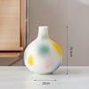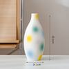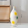 Bring a vibrant touch of modern artistry into your home with this stunning ceramic vase. Its sleek, abstract design combined with colorful hand-painted spots makes it the perfect statement piece for any room. The vibrant hues of yellow, blue, and green are expertly applied on a ribbed surface, adding depth and texture to this exquisite decor item. Whether displayed alone or with your favorite flowers, this vase is sure to impress and become the centerpiece of your living space.