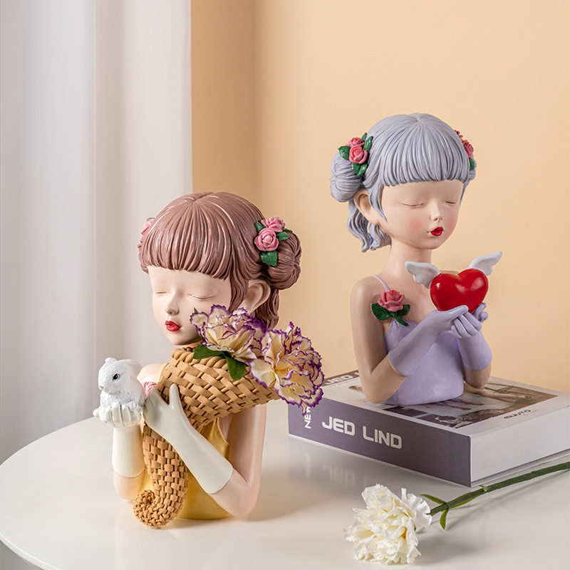 Elevate your living room, office, or dressing table with the Modern Girl Rabbit Heart Vase — a delightful blend of art, love, and style. This stunning resin sculpture captures a modern girl holding a heart-shaped vase and a gentle rabbit, symbolizing affection and tranquility. Crafted with fine attention to detail, it adds a touch of warmth and sophistication to any corner of your home. Perfect as a birthday gift or a charming piece for your personal décor collection, this decorative statue is both meaningful and visually captivating.