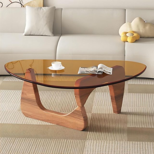 This modern glass coffee table is designed to elevate your living room, bedroom, or office with effortless style. Inspired by clean mid-century design, its unique triangular shape and warm walnut wood base create a bold yet balanced look. The clear tempered glass top adds a light, airy feel, making small spaces appear more open while still offering a strong and stable surface for daily use. Whether you’re hosting guests, enjoying your morning coffee, or decorating your favorite corner, this table blends beauty with function.