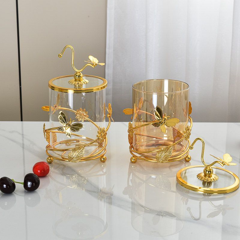 Introducing our stunning Modern Metal Glass Storage Jar, designed to bring style and functionality to your home. This chic storage jar combines a clear glass base with a beautifully crafted golden butterfly design, making it not only a practical storage solution but also a captivating piece of art. Perfect for any room, this decorative jar adds a touch of sophistication while keeping your items organized.
