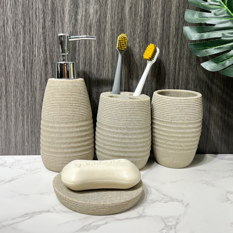 Upgrade your daily routine with accessories that balance style and practicality. The resin finish provides a luxurious look without the fragility of glass or the heaviness of ceramic. Its striped texture adds a subtle sophistication while blending seamlessly with any color palette. This set isn’t just about aesthetics—it’s about creating an organized, inviting environment where every detail feels intentional.